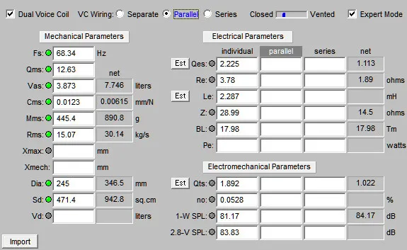 Parallel T/S Parameters