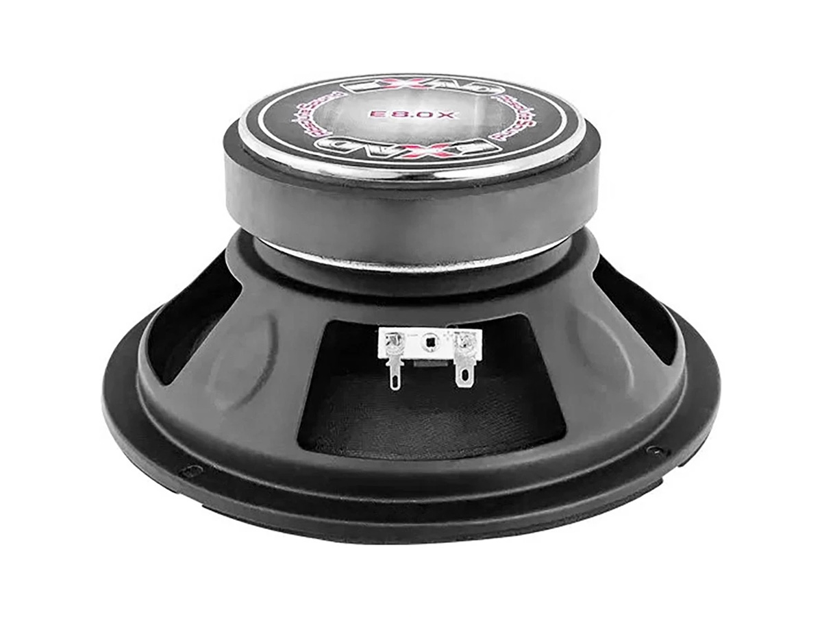 E 8.0X เป็นลำโพงเฟรมบางแต่มีน้ำหนักเอาเรื่องอยู่ (ด้วยอลูมิเนียมแม่เหล็กที่มีขนาด และน้ำหนักพอตัว) แข็งแกร่งทนทานด้วยโครงโลหะปั๊มขึ้นรูป แม่เหล็กเส้นผ่านศูนย์กลาง120 มิลล์หนา 20 มิลล์ ขั้วต่อสายเป็นแบบหางปลา กรวยลำโพงทำด้วยกระดาษอัดรีดขึ้นรูป Press Paper ดีไซน์สไตล์ Concave ดัสท์แค็ปตรงกลางเป็นไฟเบอร์สกรีนโลโก้ EXAD ลงตัวพอดีๆ ขอบเซอร์ราวด์หรือขอบลำโพงเป็นแบบพิมพ์นิยมคือเป็นแบบ ผ้า Silk M-Type เคลือบน้ำยาอย่างดีเพื่อให้ยืดหยุ่น อึดแกร่งทนต่อทุกสภาวะแวดล้อม ถ่ายทอดเสียงด้วยวอยซ์คอยล์ขนาด 35 มิลล์ ความต้านทาน 4 โอห์ม ช่วยให้หาตัวเลือกเพาเวอร์มาขับได้ง่ายๆ พร้อมกันนี้ยังรองรับกำลังขับได้สูงถึง 300 วัตต์ (Max)