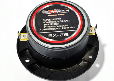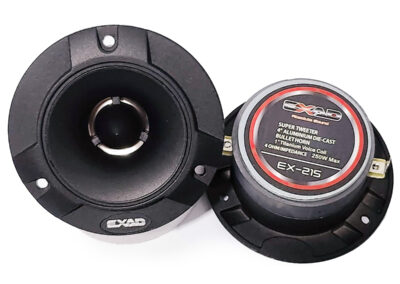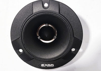 นับเป็น Titanium Super Tweeter ที่ EXAD คัดสรรเพื่อนักเล่นที่ต้องการความแรง แต่มีรายละเอียดเสียงในย่านความถี่เสียงสูงอย่างครบถ้วน ภายใต้คอนเซ็ปท์ “คุณภาพดี แรงๆ ในราคาเบาๆ” ในรูปแบบของ Bullet Horn ขนาด 4 นิ้ว พร้อมตัวโครงสร้างหลักจะทำมาจากอลูมิเนียมขึ้นรูปชุบสีดำทั้งตัว…พร้อมวางอลูมิเนียมเฟสปลั๊กไว้ตรงกลางกรวยเพื่อช่วยเสริมให้มุมการกระจายของเสียงกว้างมากขึ้น ขับเคลื่อนด้วย Titanium Voice Coil ขนาด 28 mm. ASV ความต้านทาน 4 โอห์ม สามารถตอบสนองความถี่ได้ในช่วง 1-22 KHz…มีความไวต่อเสียงสูงถึง 98 dB และรองรับกำลังขับได้สูงสุด 300W กันเลยทีเดียว…ทดลองฟังเสียงและสัมผัสตัวจริงได้แล้วที่ร้านตัวแทนจำหน่ายทั่วประเทศ