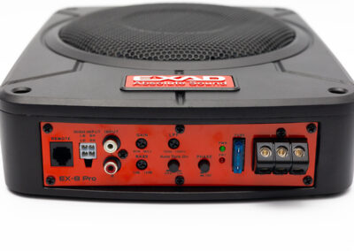 EX-8 PRO เป็นซับบล็อก ขนาด 8 นิ้ว ทรงหรูที่มีโครงสร้างของตัว Box ทำมาจากอลูมิเนียมขึ้นรูปเคลือบสีดำด้าน เน้นความแข็งแกร่ง ทนทาน บรรจุซับวูฟเฟอร์ขนาด 8 นิ้วไว้ภายใน กรวยโลหะเคลือบเงา ขอบยางเซอร์ราวขนาดใหญ่พอเหมาะ สโตรกช่วงชักเต็มอิ่มครบถ้วน ตัวเครื่องมีเดินลายเส้นให้ดูมีมิติ พร้อม โลโก้ EXAD สีแดงโดดเด่นตรงกลาง เน้นความเป็นสายพันธ์ Red Genaration สินค้าคุณภาพสูงของ EXAD มีเจาะรู 4 มุมของตัวเครื่องไว้สำหรับงานติดตั้งให้ดูกลมกลืนซ่อนหัวน๊อตได้อย่างลงตัว ตัวเครื่อง ซ้าย-ขวาเป็นแบบเซาะร่องเพิ่มความสวยงามของรูปลักษณ์พร้อมระบายความร้อนสะสมได้ดี