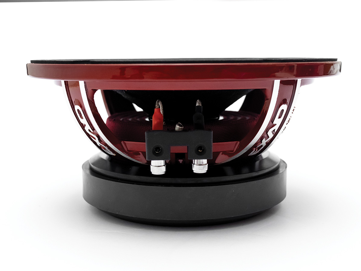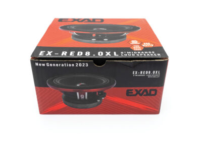 ถือเป็นลำโพง Midrange ที่ทำงานได้อย่างเก่งกาจในย่าน Mid-Bass ตัวเก่งอีกตัวหนึ่งของ EXAD ภายใต้ชื่อรุ่น EX-RED 8.0 XL ในขนาด 8 นิ้ว ที่มาด้วยโครงสร้างหลักแบบโลหะอลูมิเนียมหล่อขึ้นรูป 4 ก้าน กัดเซาะล่องโลหะอลูมิเนียมที่ก้านให้เป็น LOGO EXAD ดูเด่นทั้ง 4 ก้าน ชุบและอบสีแบบรถยนต์ด้วยสีแดงเงางาม ยืดอายุการใช้งานได้อย่างยาวนาน หมดปัญหาสนิมกันกิน มีน้ำหนักต่อดอกแบบรุ่นเฮฟวีเวทเลยทีเดียว ถ้าเทียบรุ่นกับลำโพง 8 นิ้ว ด้วยกัน