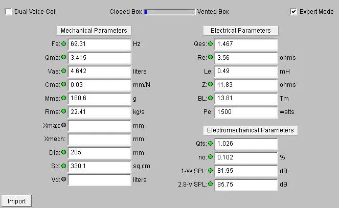 ด้วยค่า EBP ที่ต่ำจนแตะระดับ 77 บ่งบอกถึงบุคลิกที่มุ่งเน้นความเป็นตู้ปิดก็ได้…ตู้ปิดก็ดี กรณีของตู้ปิดโปรแกรม BassBox Pro ก็ฟันธงลงมาที่ตู้ปิดขนาดไม่ใหญ่มากปริมาตรเพียง 0.6 ลบ.ฟุต…เมื่อติดตั้งในรถยนต์ซึ่งมีการบวกลบเรโซแนนซ์แล้ว ปรับจูนอย่างลงตัวได้แถวๆ 70 Hz ลูกเบสค่อนไปทางสมูท… ฟังเพราะ…หนักแน่น…เต็มพลังไม่น้อย